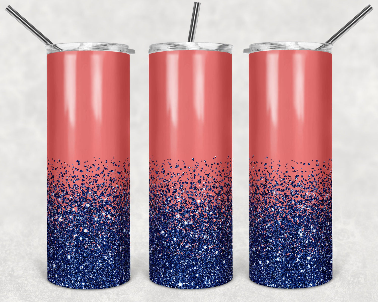 20 oz Skinny Tumbler Sublimation Design Template Glitter Ombre Navy Blue Coral Straight Faux Glitter bottom Design