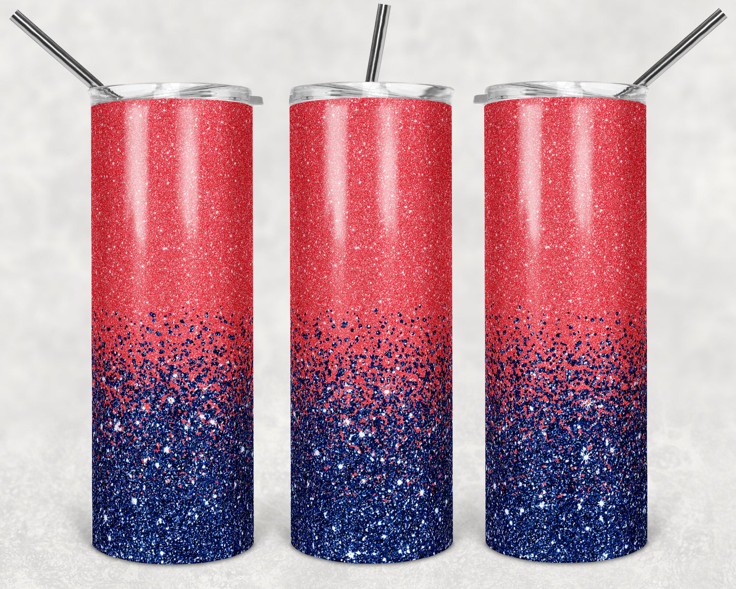 20 oz Skinny Tumbler Sublimation Design Template Glitter Ombre Navy Blue Coral Straight Faux Glitter Design