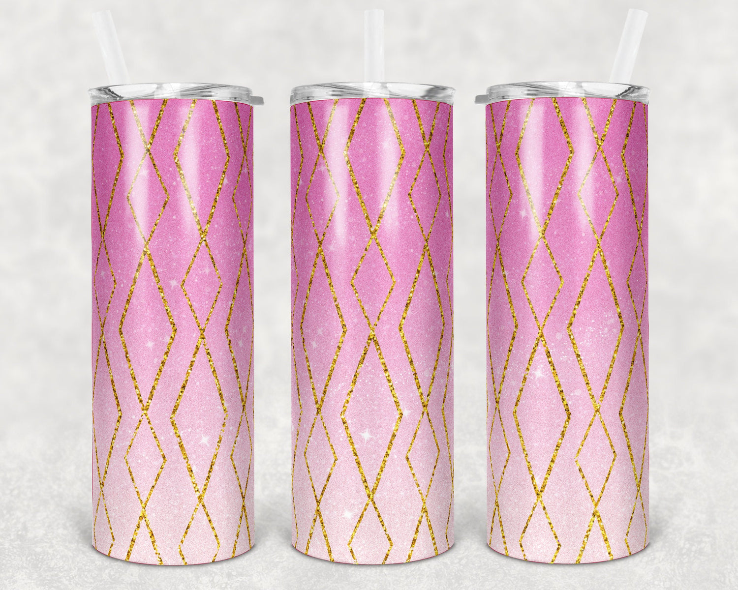 20 oz Skinny Tumbler Sublimation Design Template Glitter Ombre Pink Diamond Straight and Warped Design