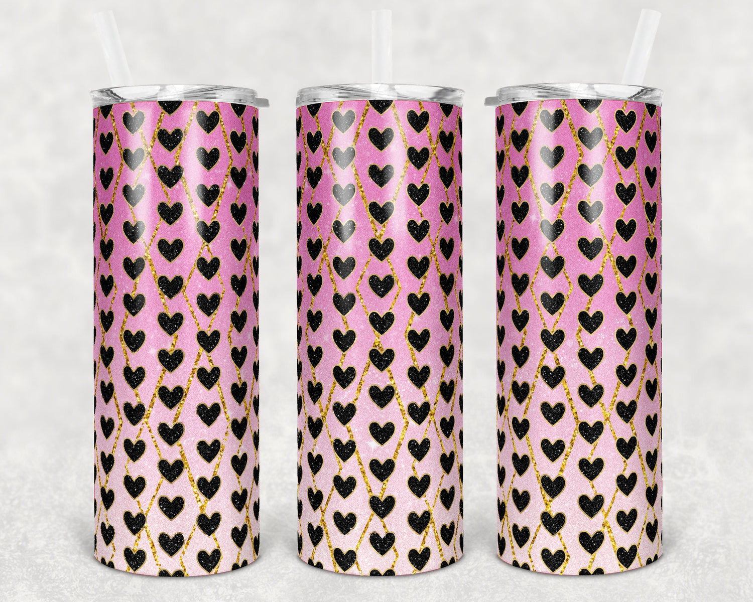 20 oz Skinny Tumbler Sublimation Design Template Glitter Ombre Pink Heart Straight and Warped Design