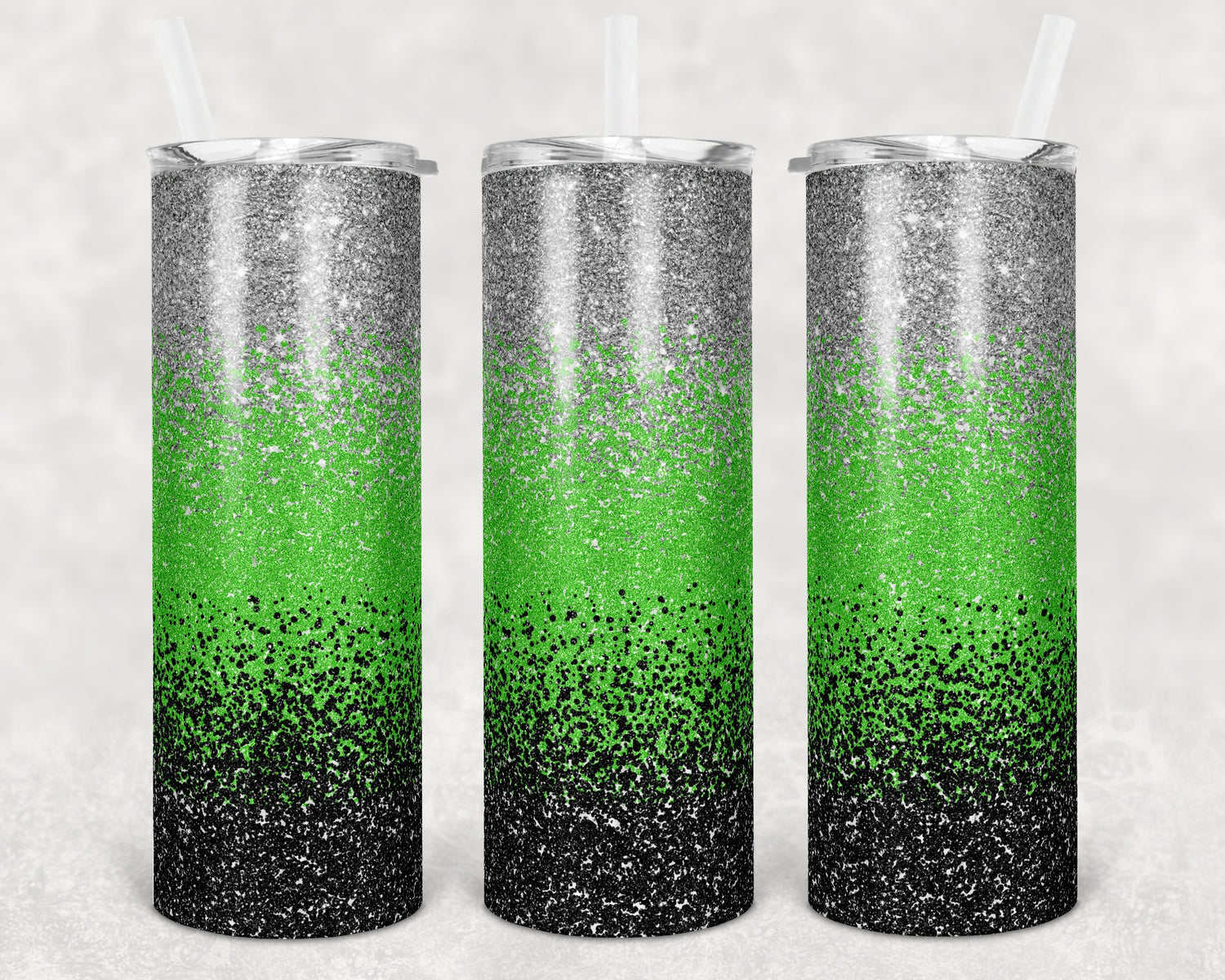 20 oz Skinny Tumbler Sublimation Design Template Glitter Ombre Silver Green Black Straight Warped Design