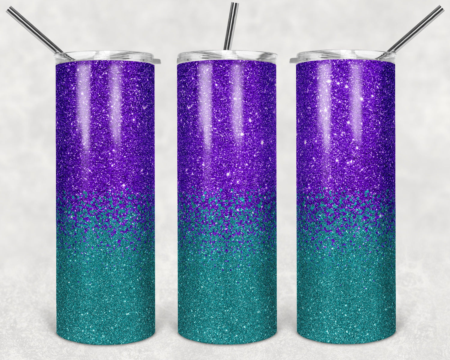 20 oz Skinny Tumbler Sublimation Design Template Glitter Ombre Teal and Purple Straight Warped Design