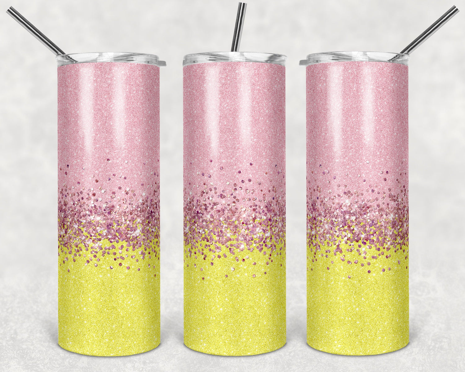 20 oz Skinny Tumbler Sublimation Design Template Glitter Ombre Yellow Pink Straight Design