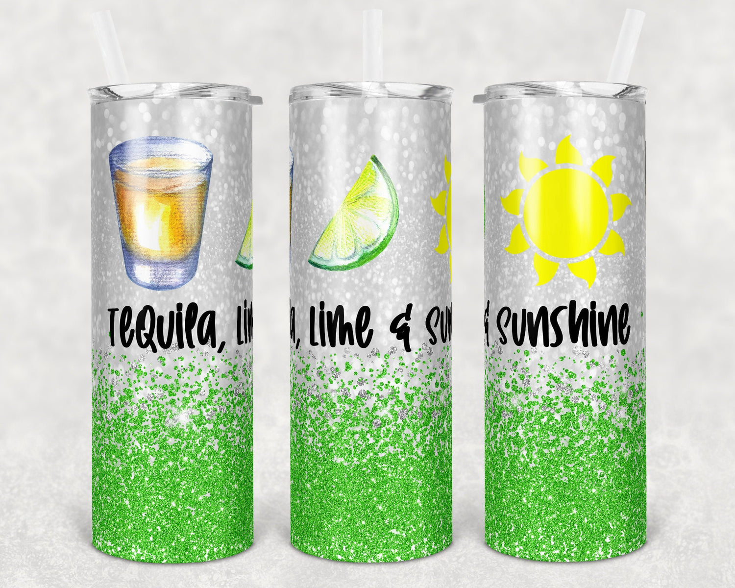 20 oz Skinny Tumbler Sublimation Design Template Glitter Tequila Lime and Sunshine Straight Warped Design