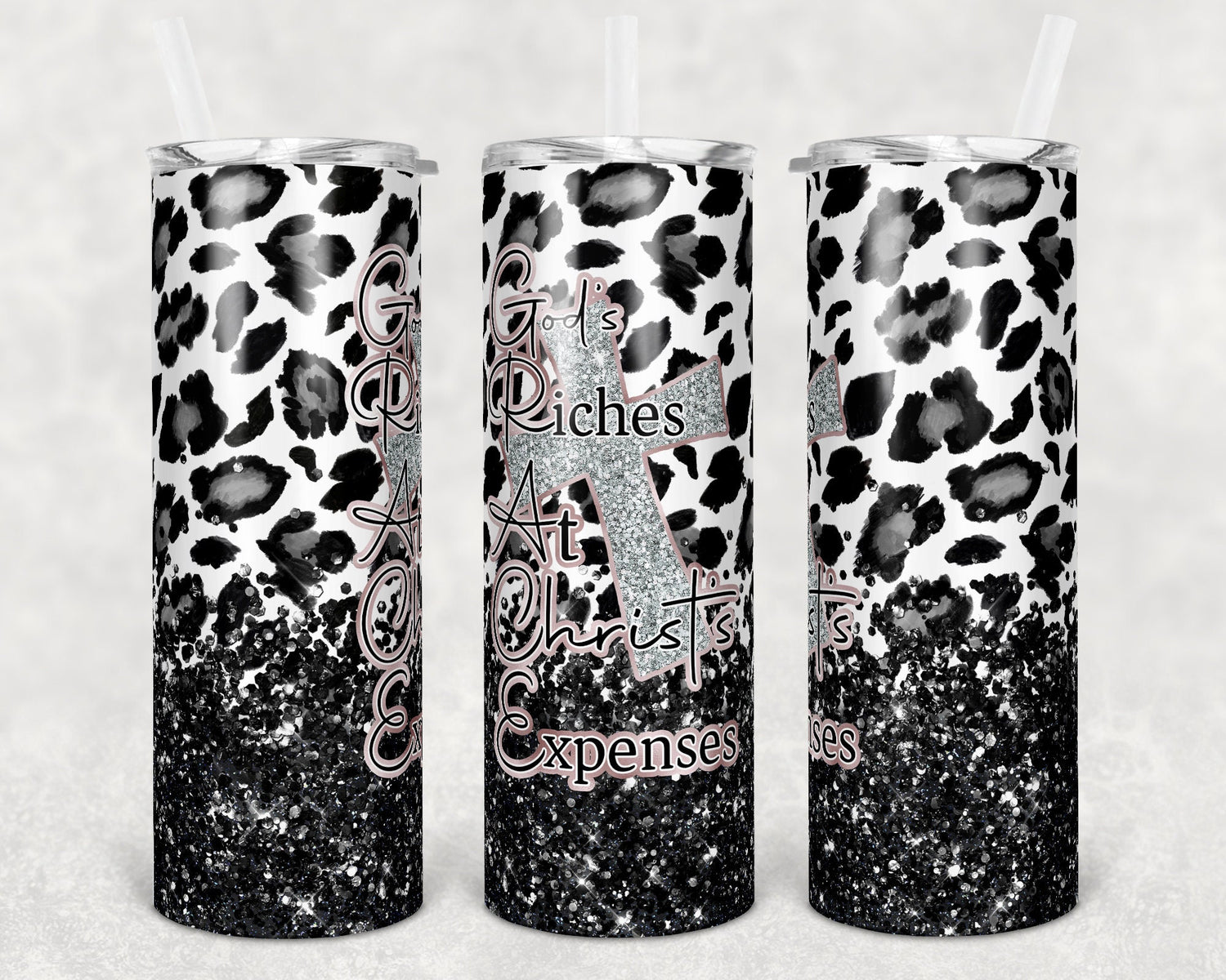 20 oz Skinny Tumbler Sublimation Design Template Grace White Black Leopard Glitter Design Inst tumblers