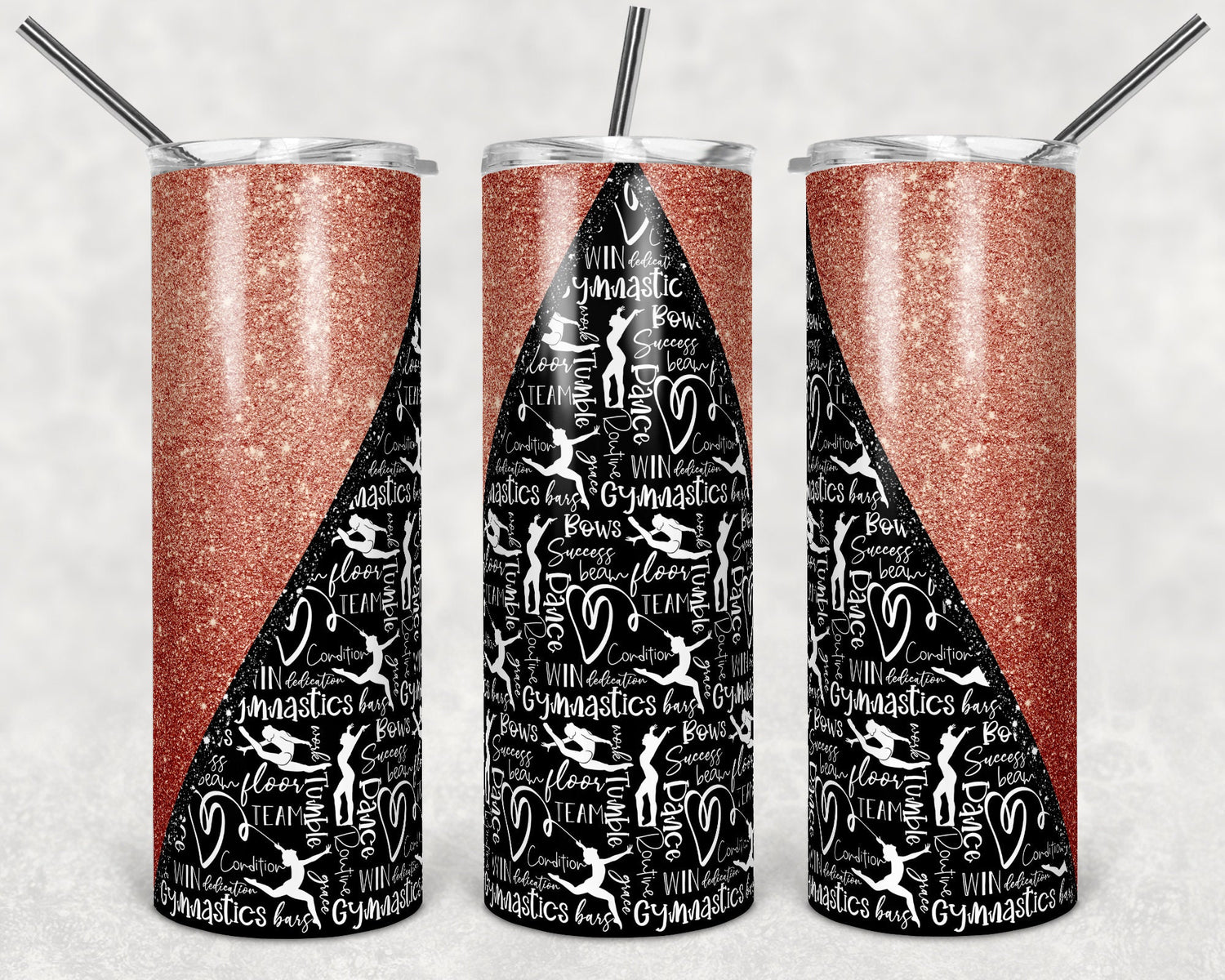 20 oz Skinny Tumbler Sublimation Design Template Gymnastics Glitter V Rose Gold Straight Design