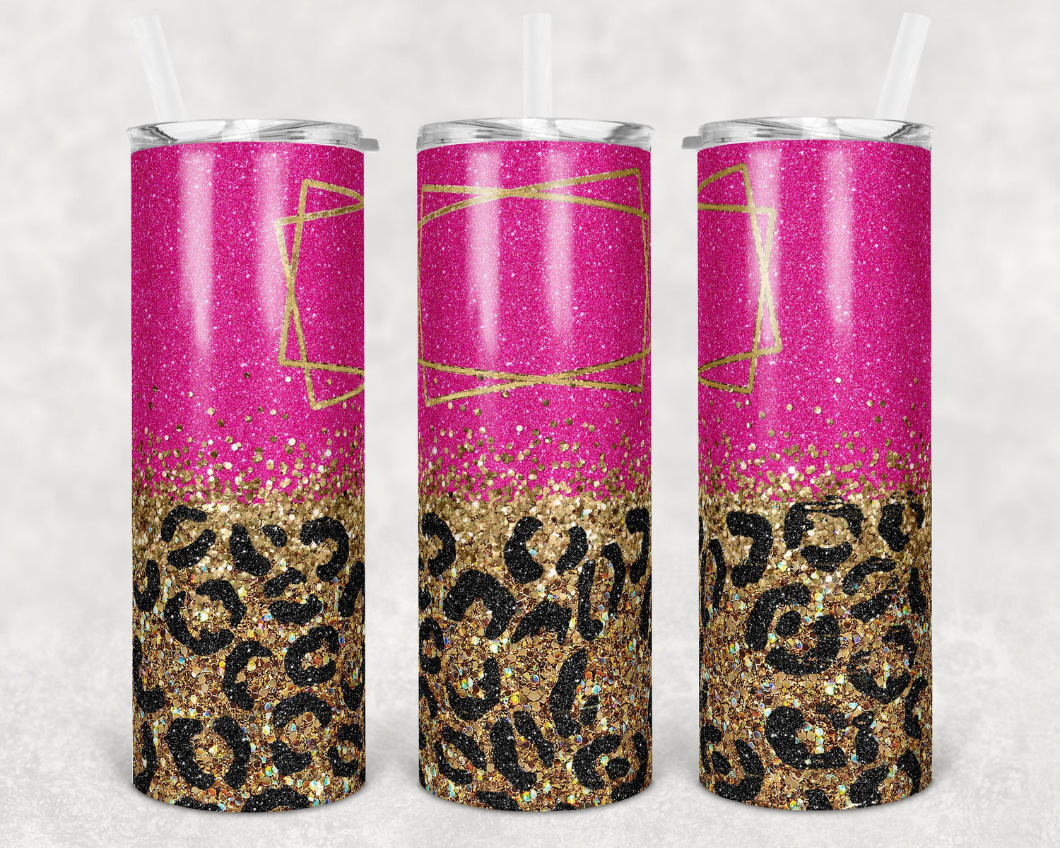 20 oz Skinny Tumbler Sublimation Design Template Hot Pink Black Gold Leopard Glitter Design Inst tumblers