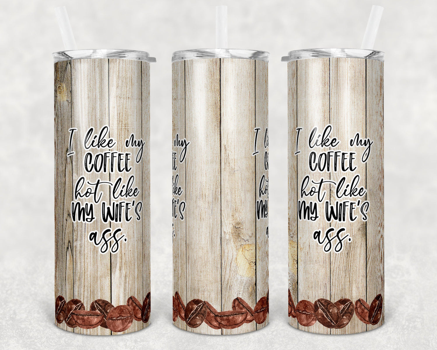 20 oz Skinny Tumbler Sublimation Design Template I like my coffee hot like my wifes ass Straight and Warped