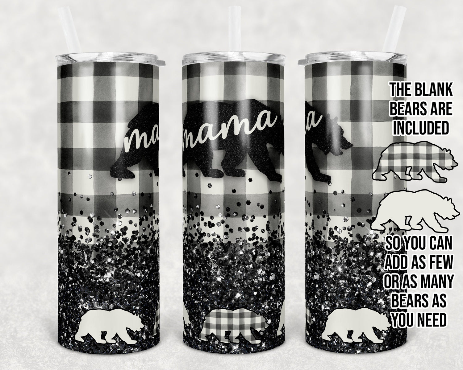 20 oz Skinny Tumbler Sublimation Design Template Mama Bear Add your own Bears Glitter Mothers Day