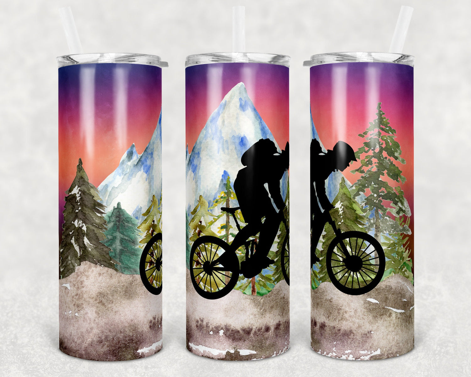 20 oz Skinny Tumbler Sublimation Design Template Mountain Biking Sunset Mountain Bike Design