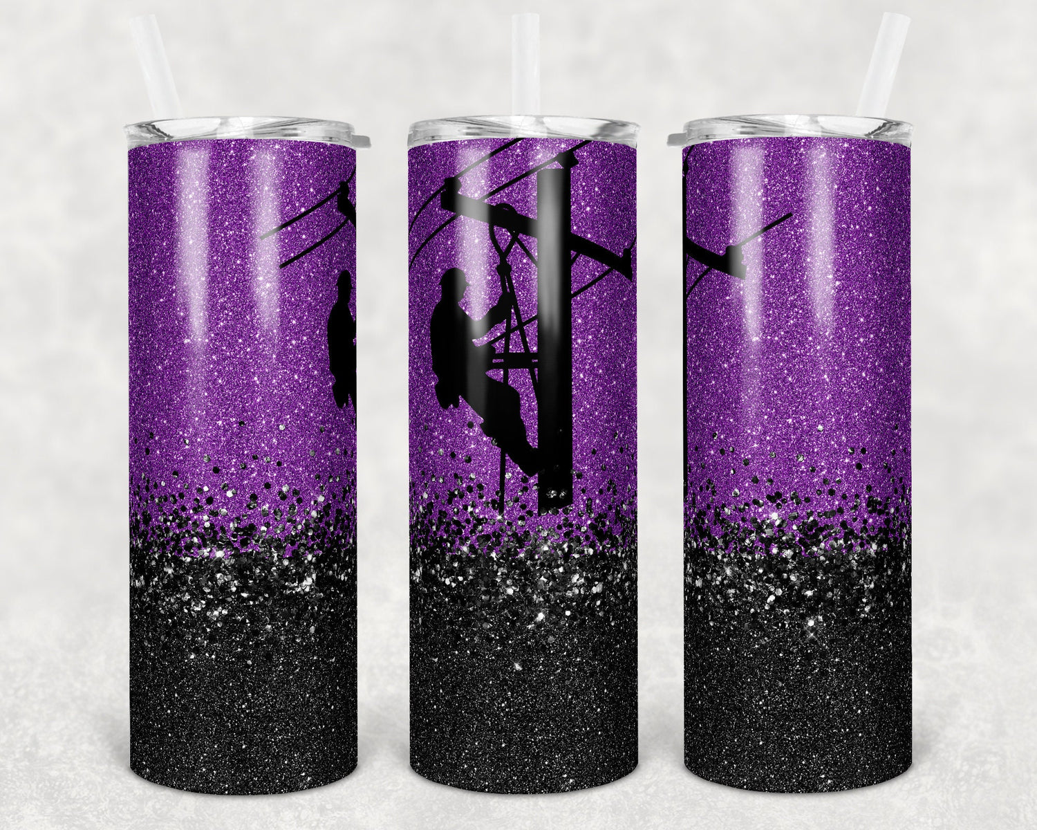 20 oz Skinny Tumbler Sublimation Design Template Purple Glitter Line Wife Lineman Design