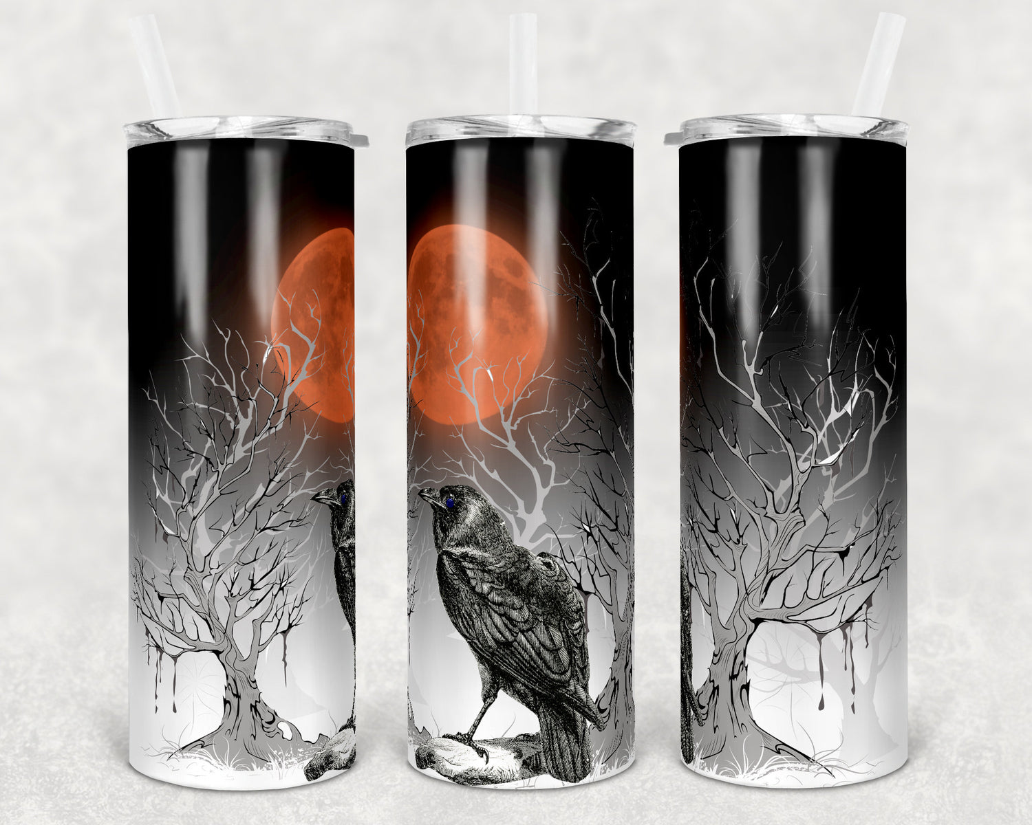 20 oz Skinny Tumbler Sublimation Design Template Raven Blood Moon Halloween Straight Warped Design