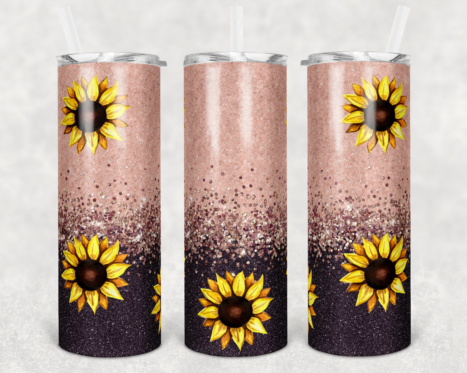 20 oz Skinny Tumbler Sublimation Design Template Rose Gold Eggplant Sunflower Glitter Design Inst tumblers