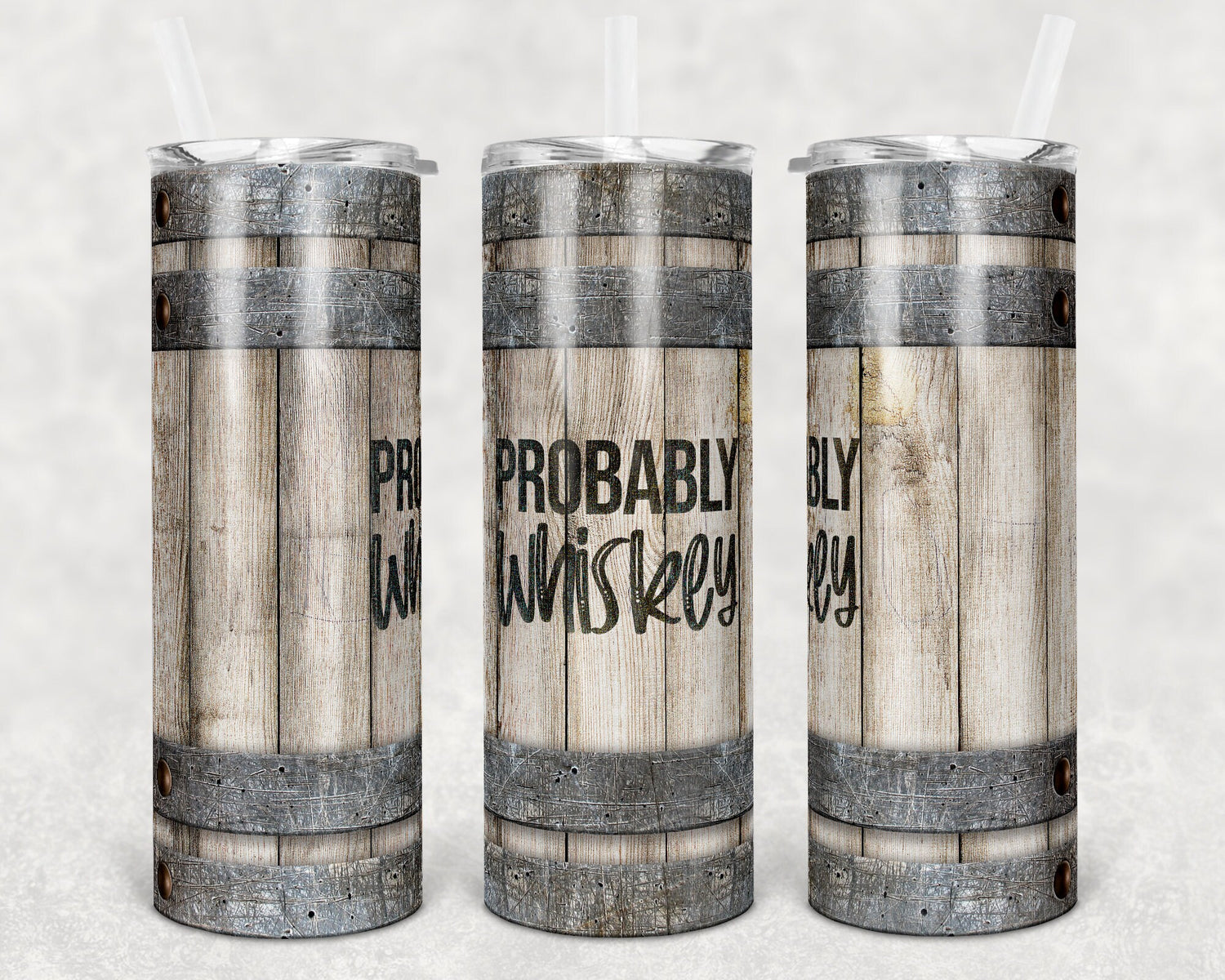 20 oz Skinny Tumbler Sublimation Design Template SEAMLESS wood barrel Probably Whiskey Straight and Warped Design