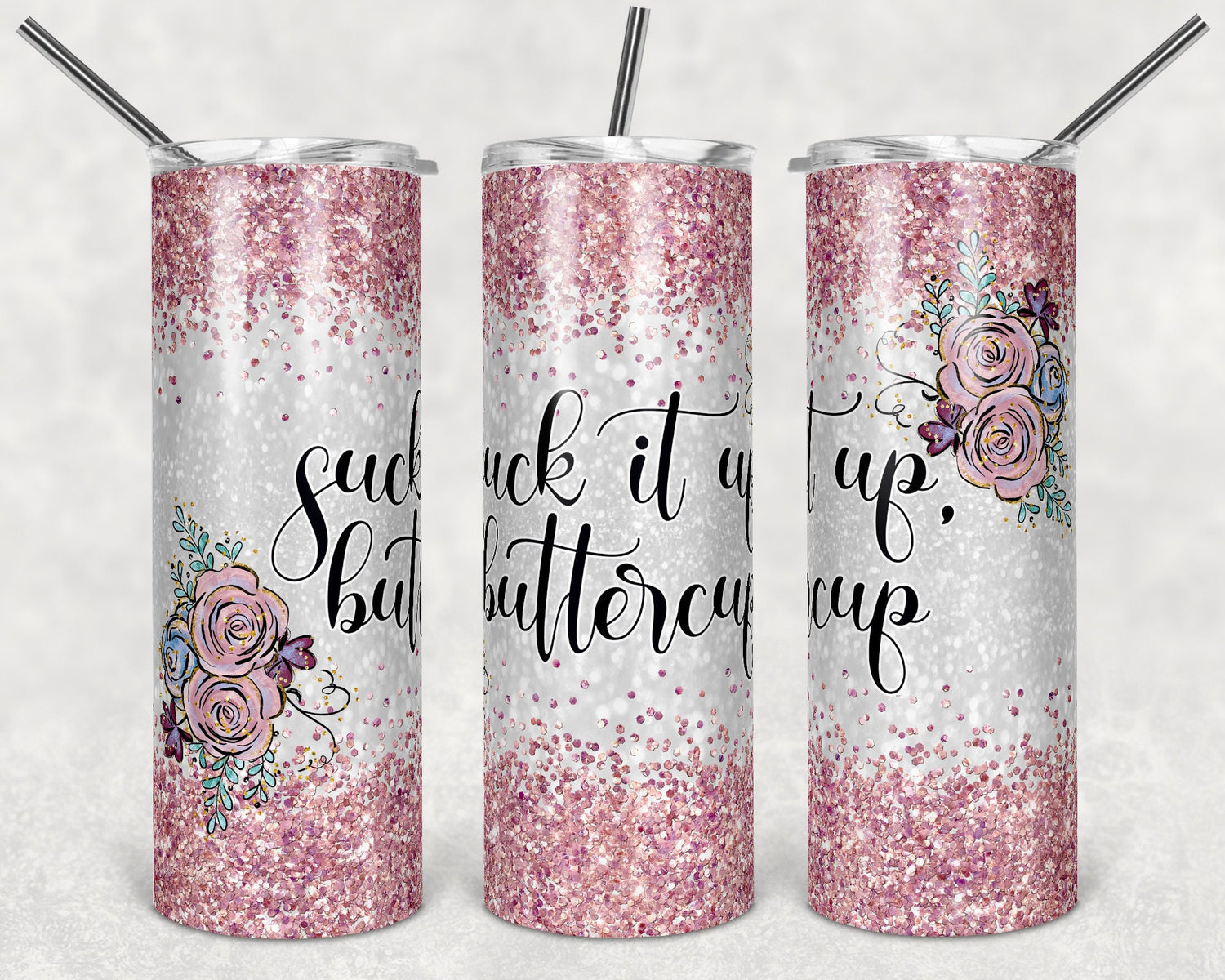 20 oz Skinny Tumbler Sublimation Design Template Suck it up Buttercup Glitter Design