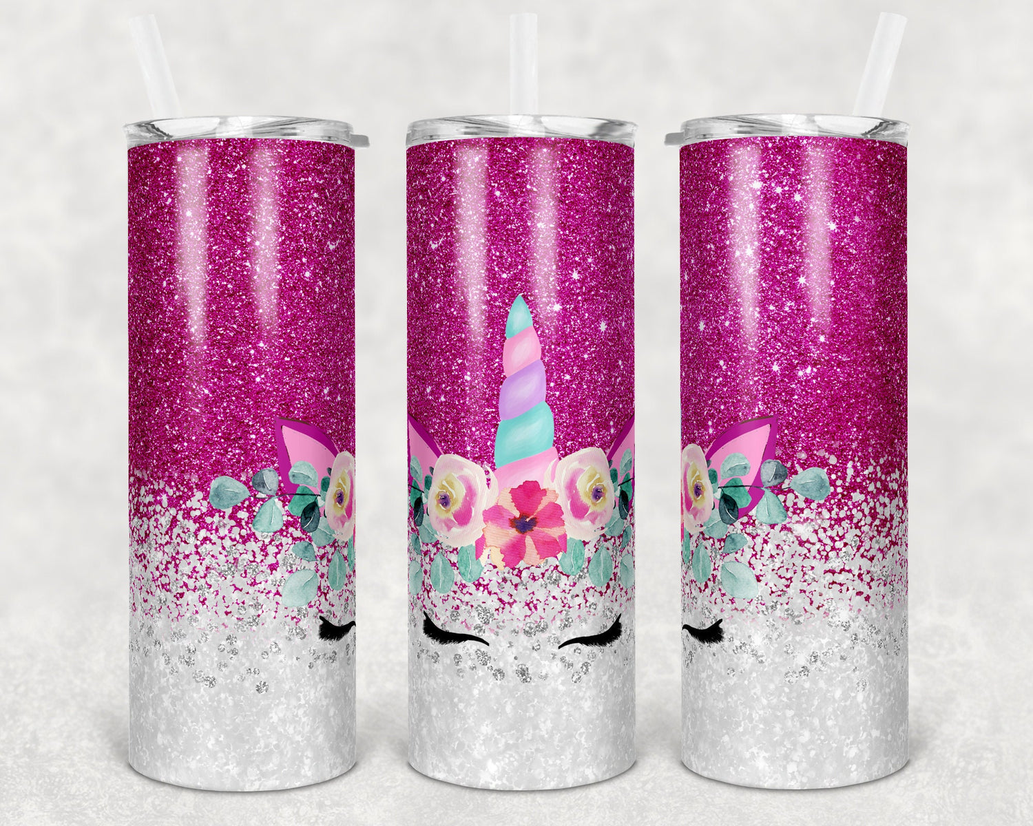 20 oz Skinny Tumbler Sublimation Design Template Unicorn Glitter Pink Straight and Warped Design