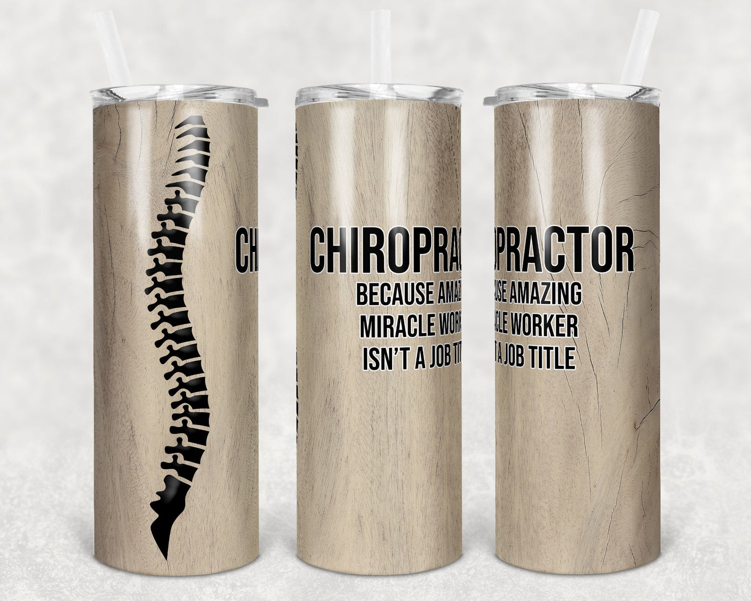 20 oz Skinny Tumbler Sublimation Design Template Wood Spine Chiroprator because Miracle Worker Inst