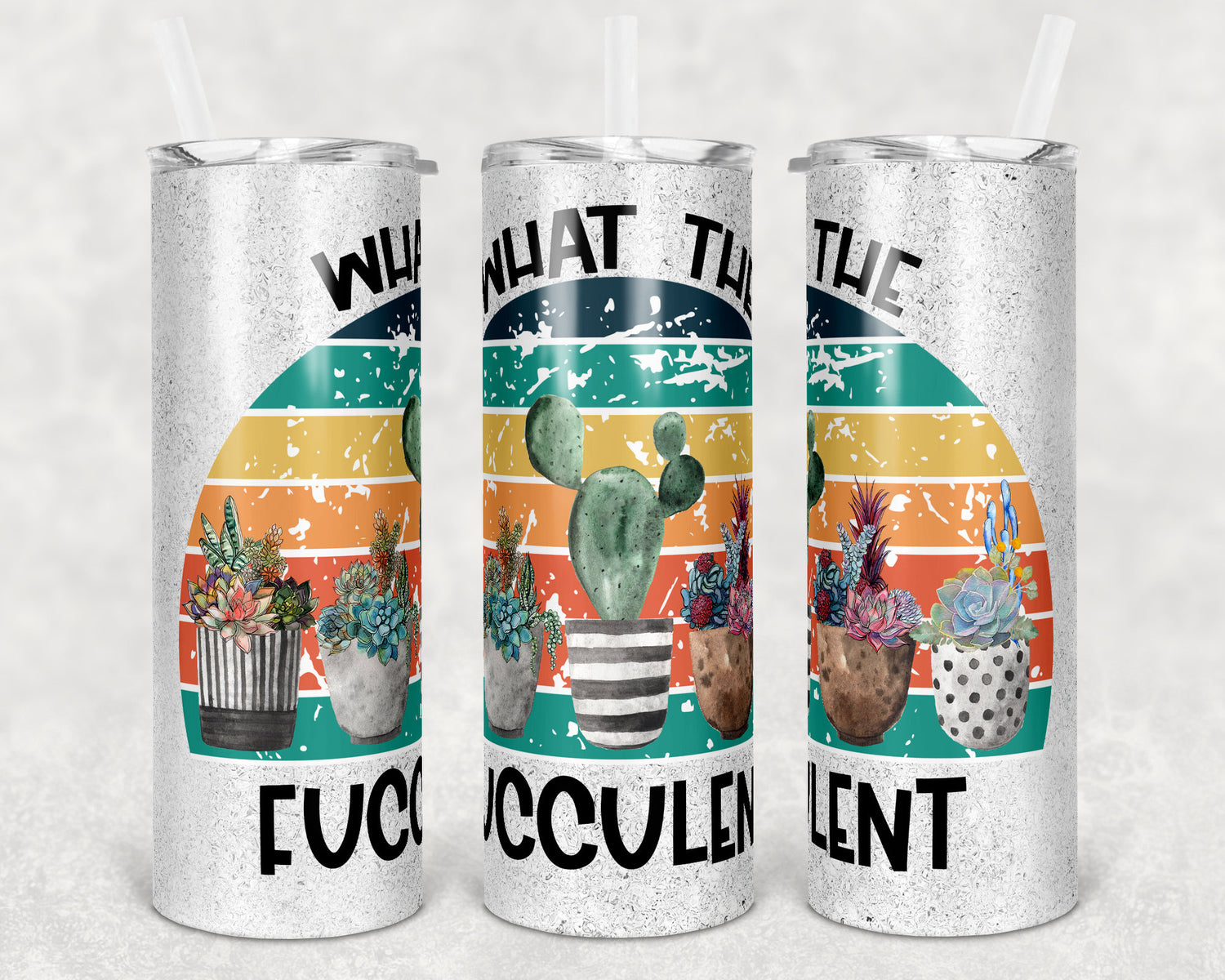 20 oz Skinny Tumbler Sublimation Glitter What the Fucculent Cactus Succulent Straight and Warped Design