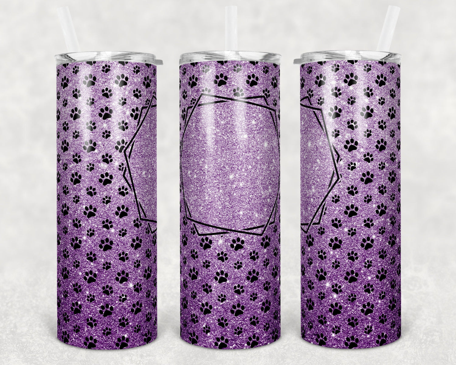 20 oz Skinny Tumbler Sublimation Lavender Glitter Paw Dog Frame Add Text Personalize Template Straight Warped