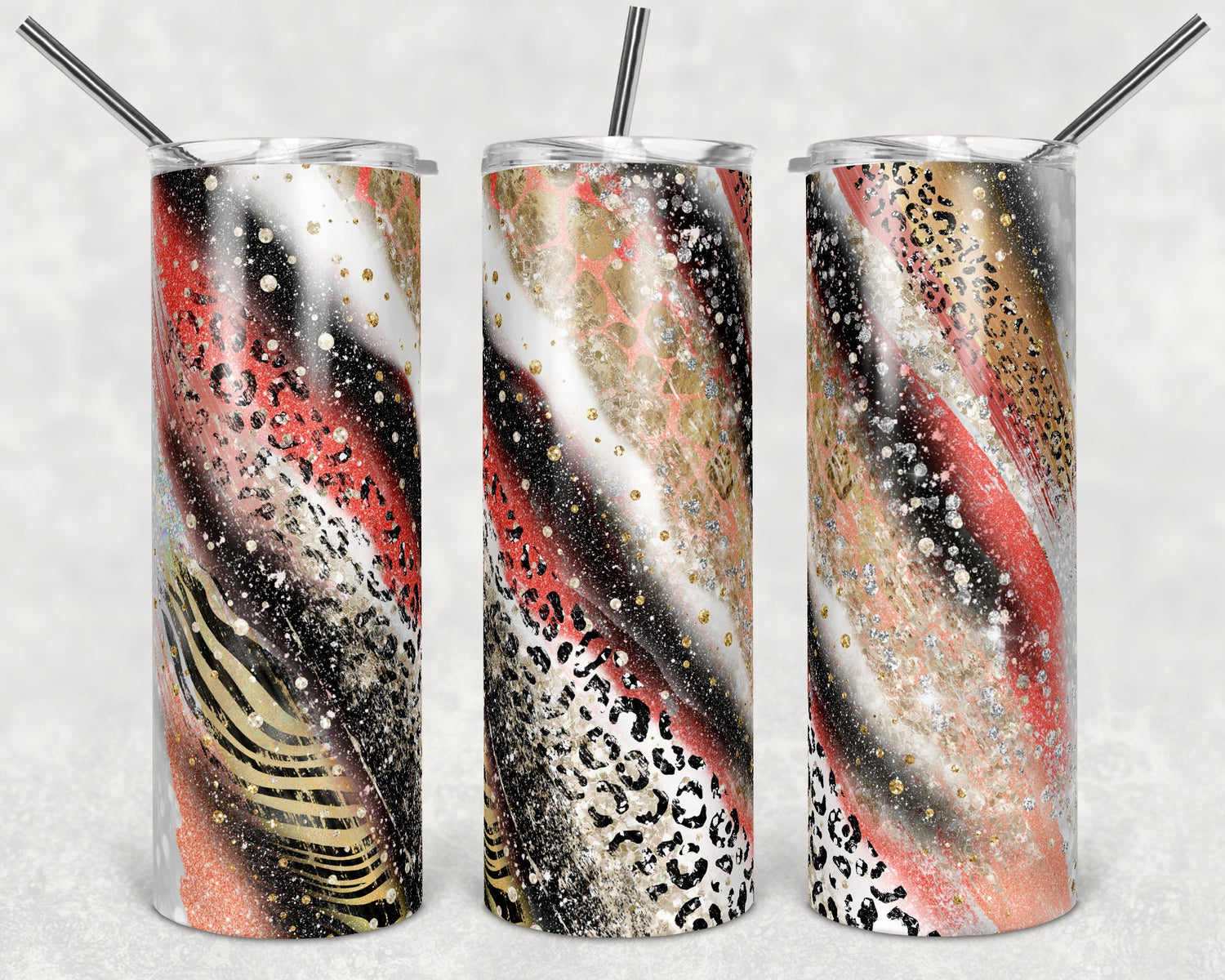 20 oz Skinny Tumbler Sublimation Template Agate Milky Way Coral Safari Animal Print Straight and Warped Design