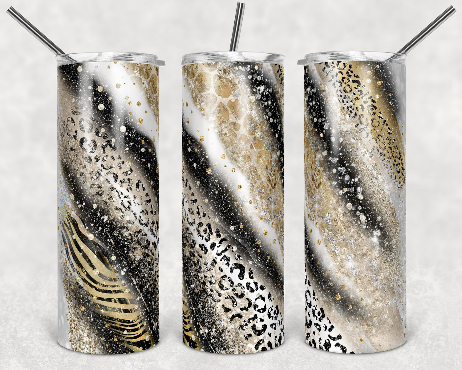 20 oz Skinny Tumbler Sublimation Template Agate Milky Way Tan Cream Safari Animal Print Straight and Warped Design