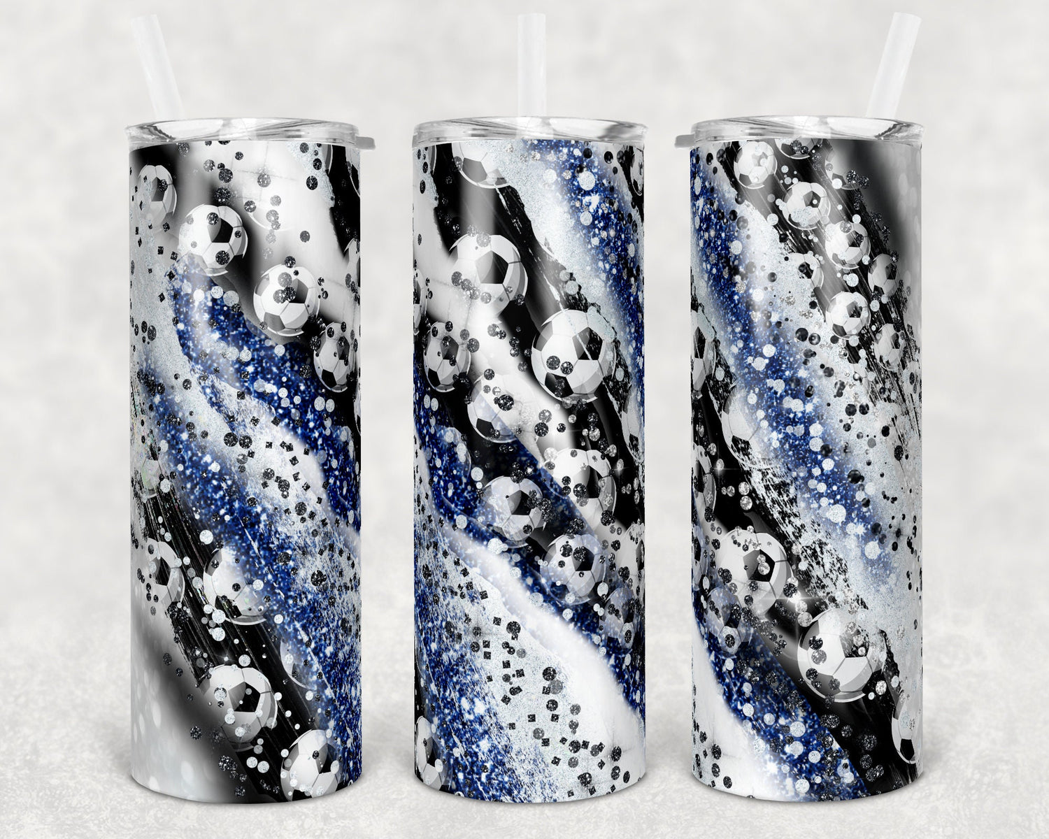 20 oz Skinny Tumbler Sublimation Template Milky Way Glitter Soccer Straight Warped Design