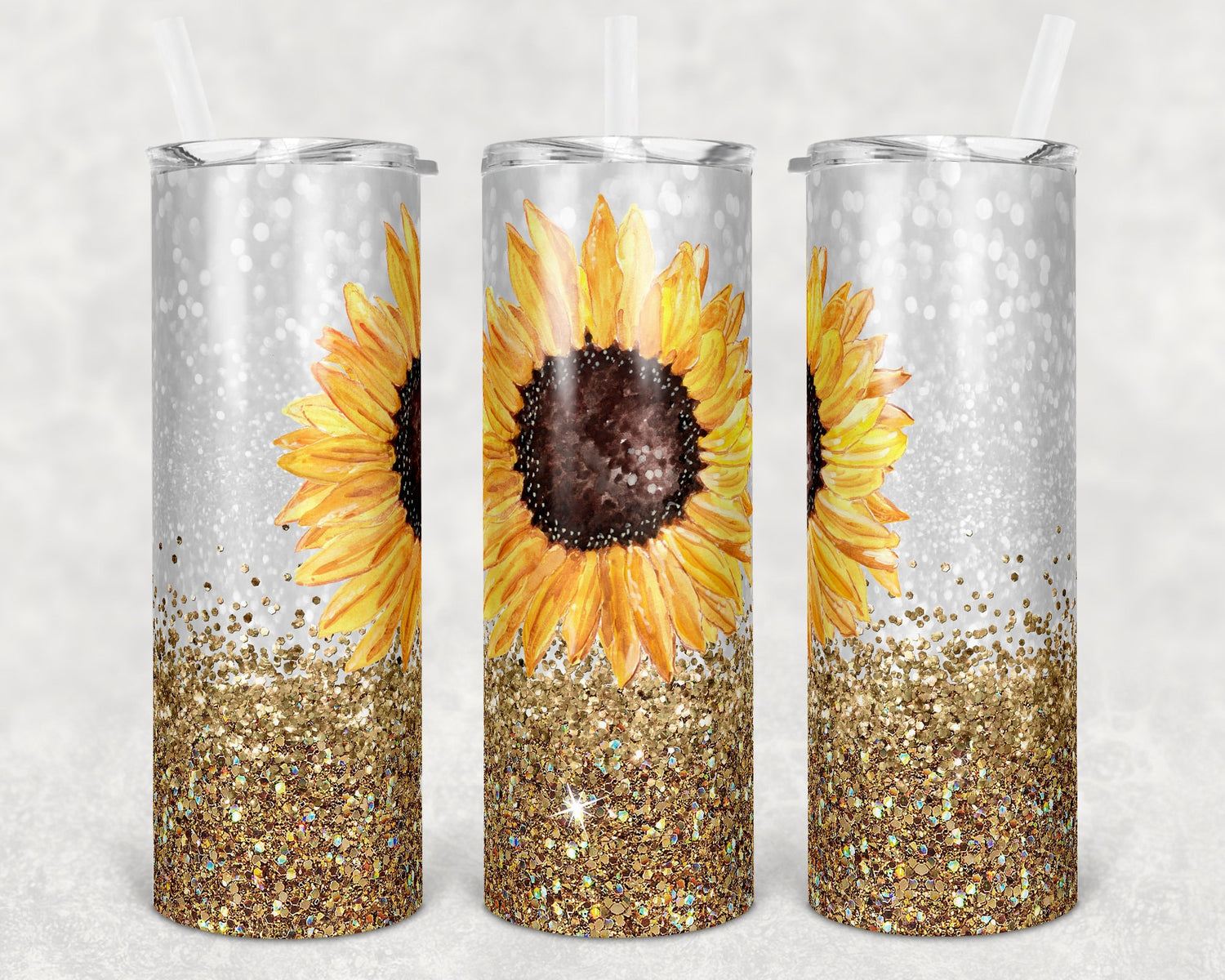 20 oz Skinny Tumbler Sunflower Gold Glitter Confetti Sublimation Design Print Transfer