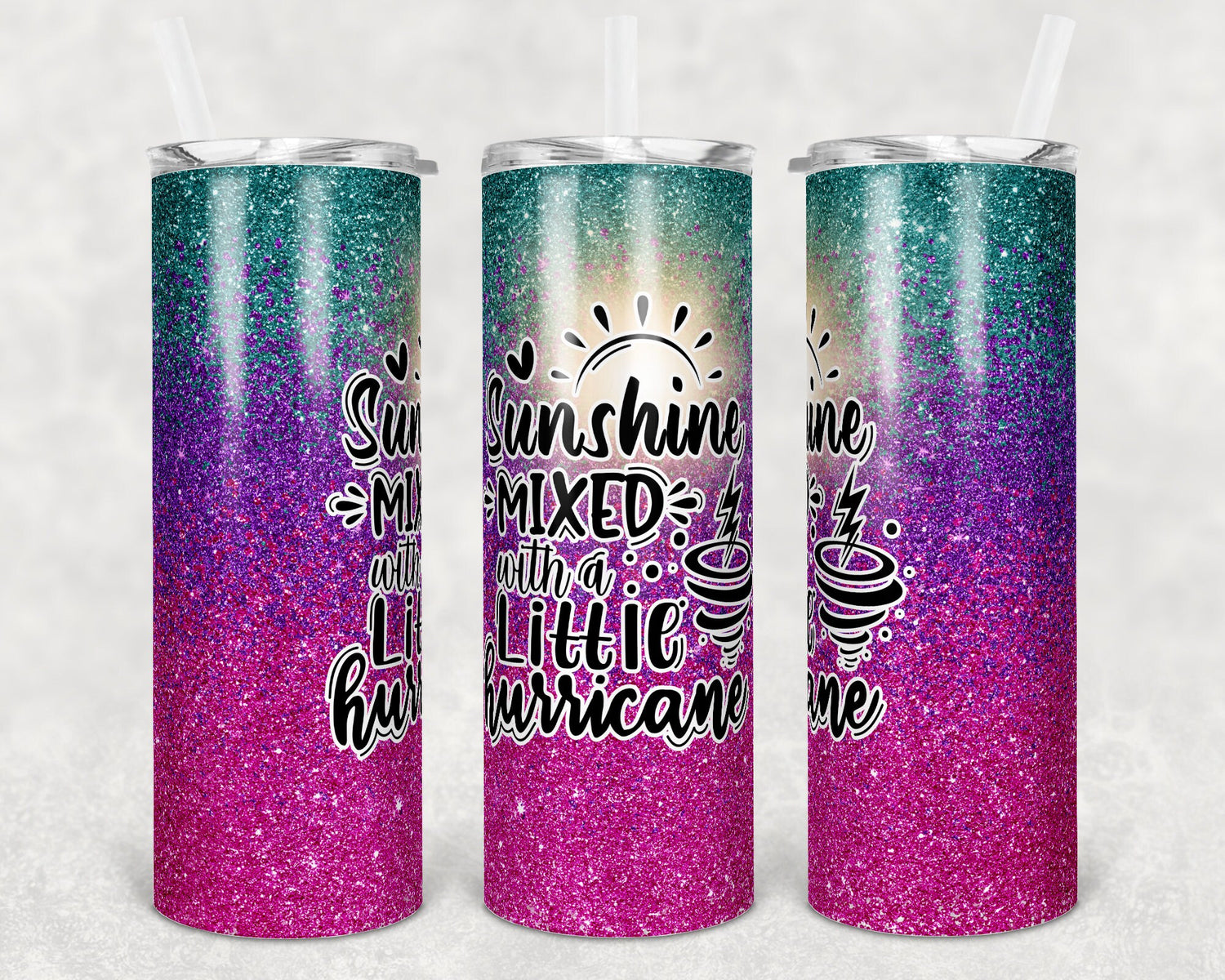 20 oz Skinny Tumbler Sunshine mixed with Hurricane Sublimation Design Print Transfer
