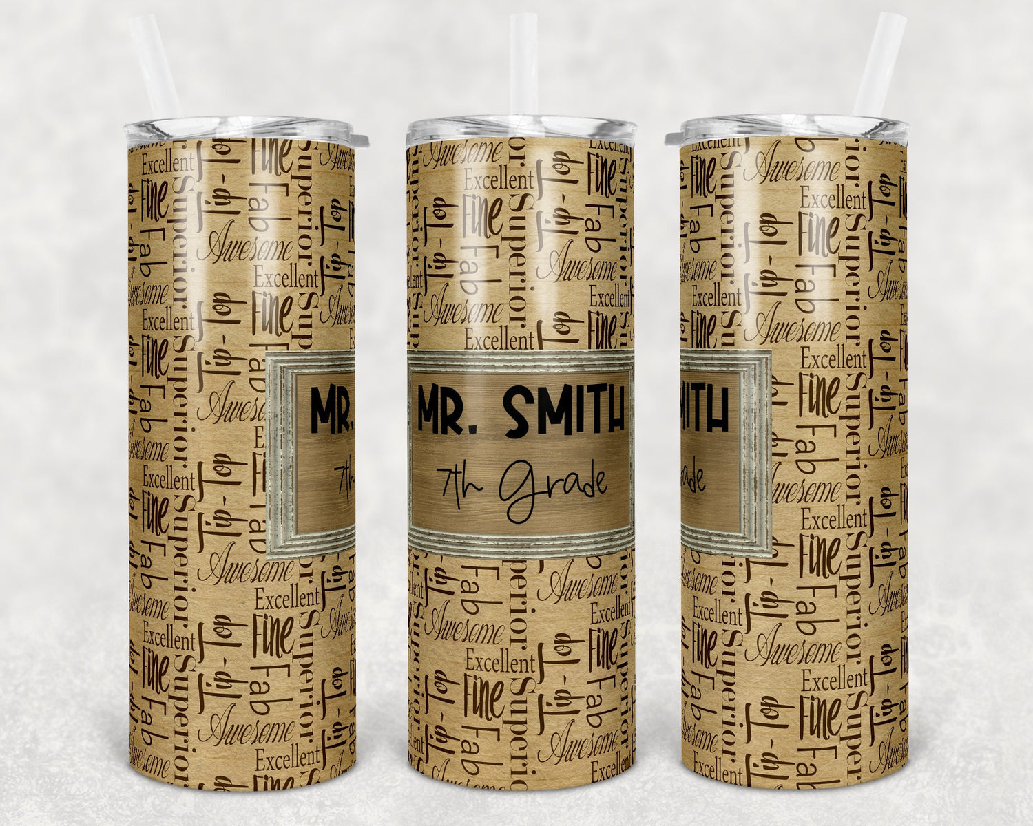 20 oz Skinny Tumbler Unisex Teacher Male Tumbler Frame Words describing teacher Monogram Sublimation Design