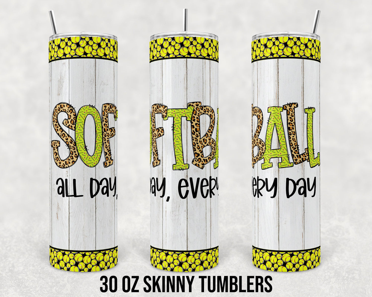 30 oz Skinny Tumbler Sublimation Design Template Softball All Day Every Day Straight Warped