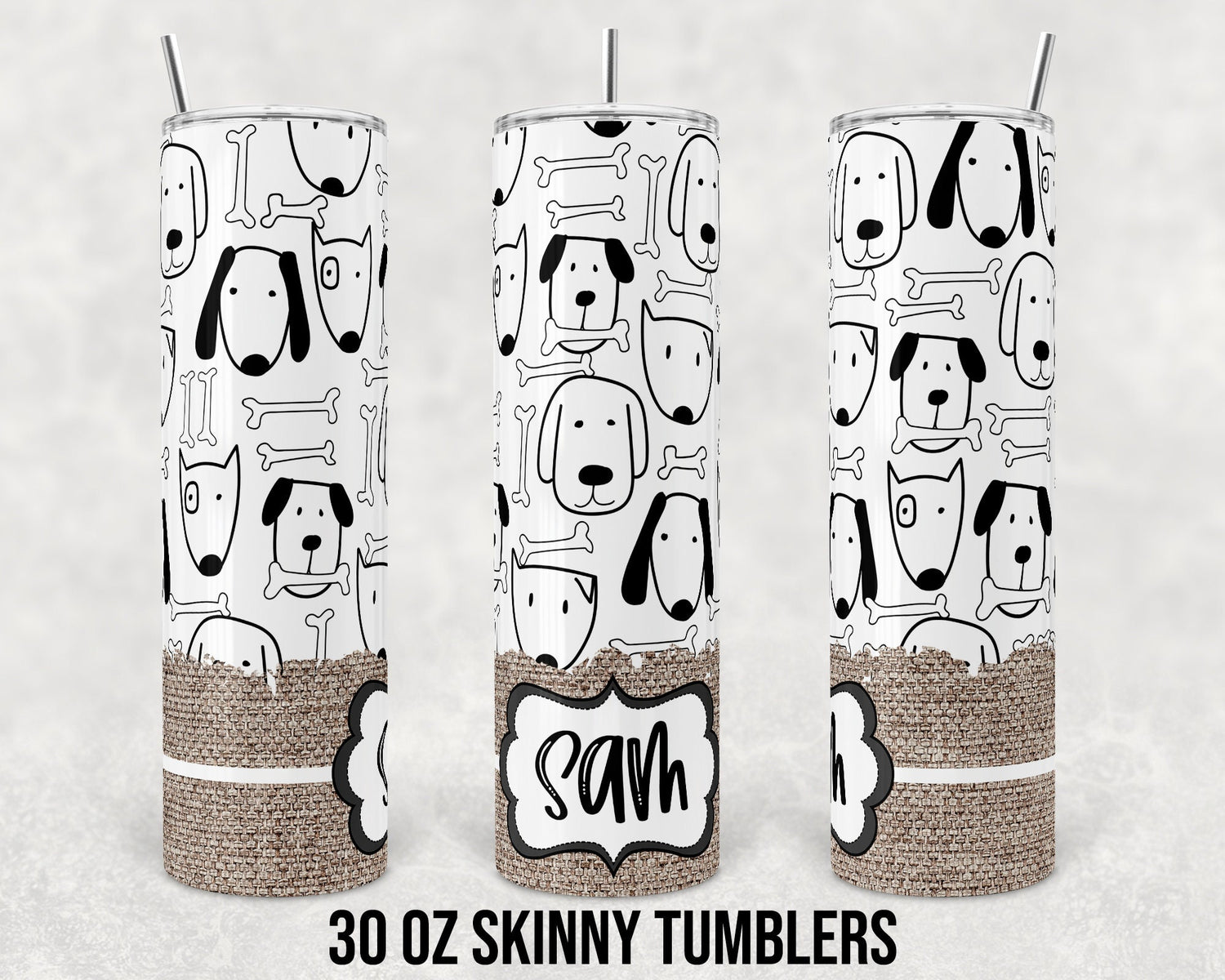 30 oz Skinny Tumbler Sublimation Many Dogs Burlap Name Plate Template Straight for 30 oz skinny tumblers