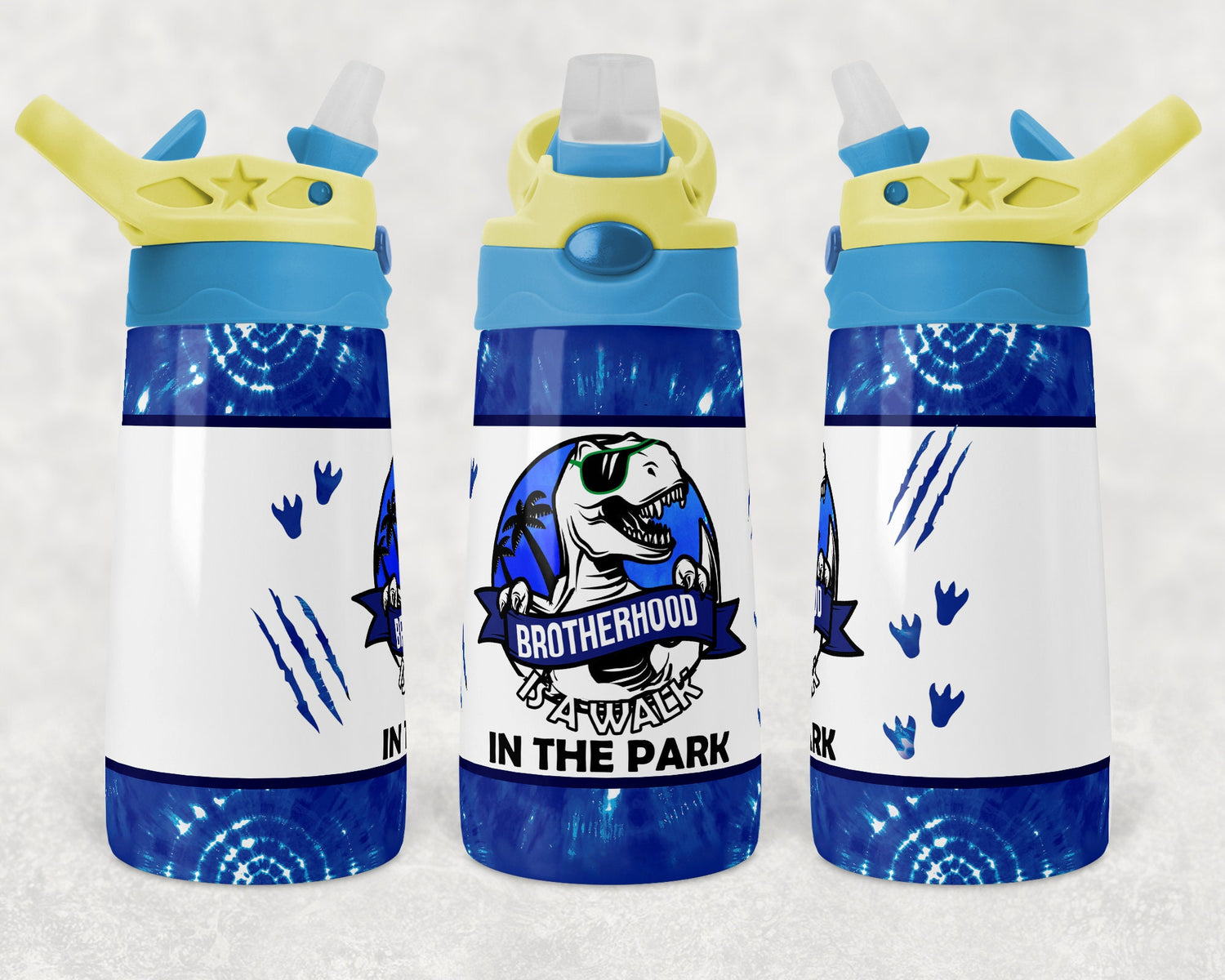 Kids water bottles Sublimation Design Template Brotherhood Dinosaur Walk in Park Tumbler