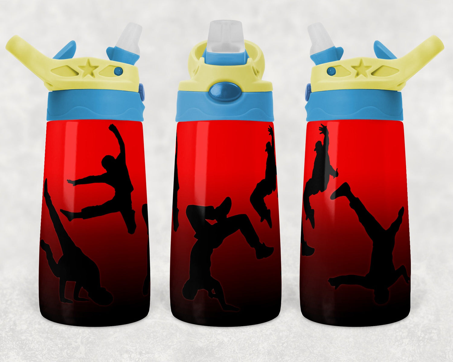 Kids water bottles Sublimation Design Template Straight and warped Dance Boys Red Black Design
