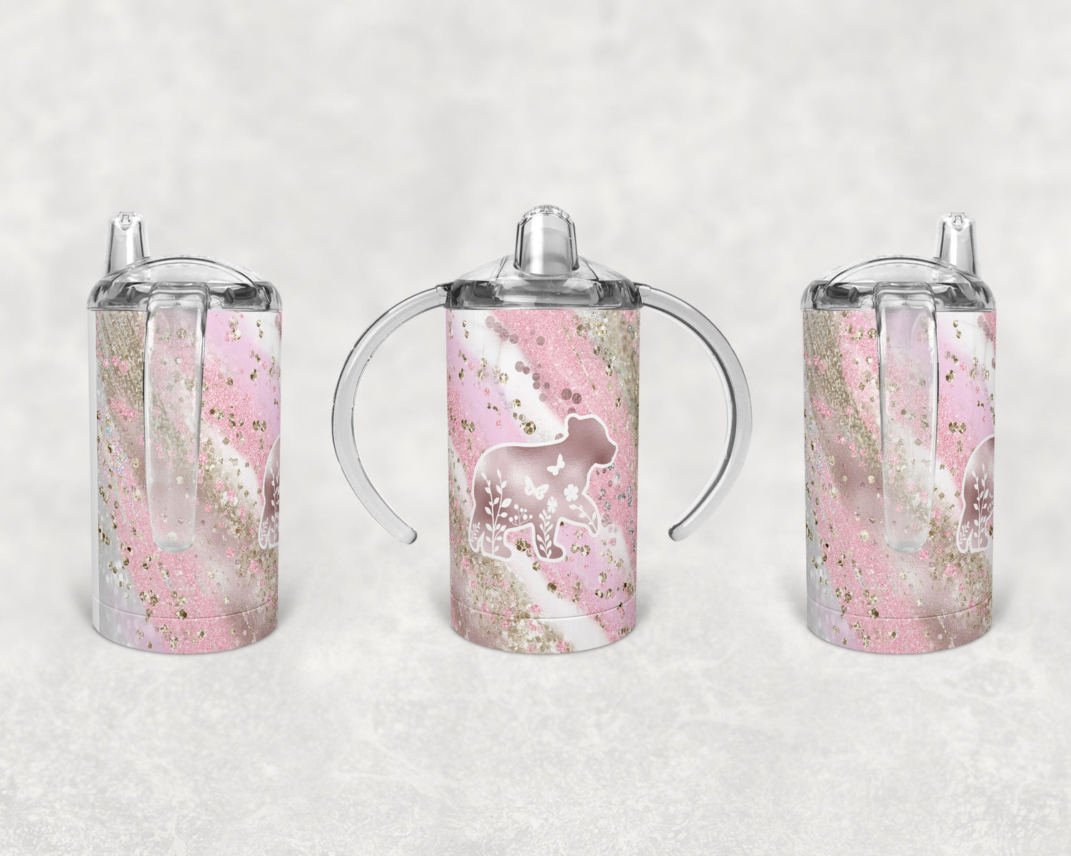 Straight Sippy Cup Sublimation Baby Bear Milky way glitter Design