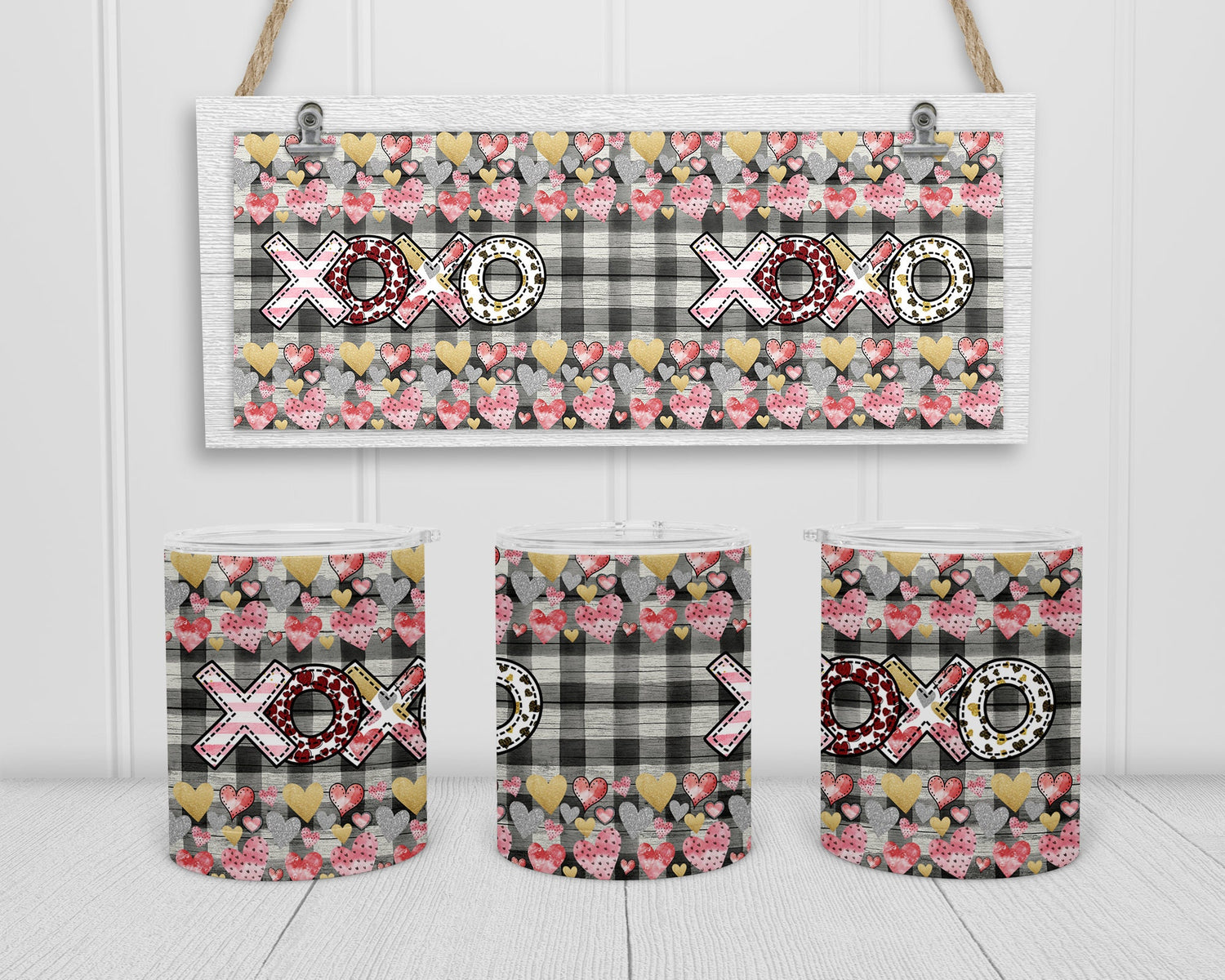 Sublimation Camp Cup Lowball Mug Sublimation Design xoxo Pink Hea Plaid background