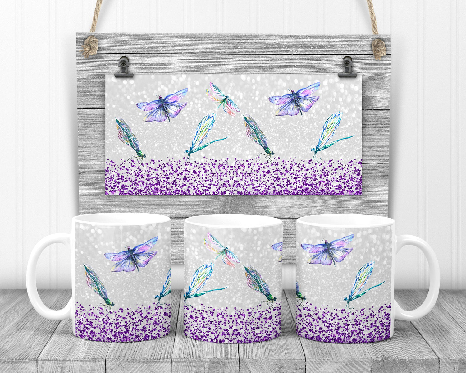 Sublimation Coffee Mug Purple Glitter Dragonfly Sublimation Design Design