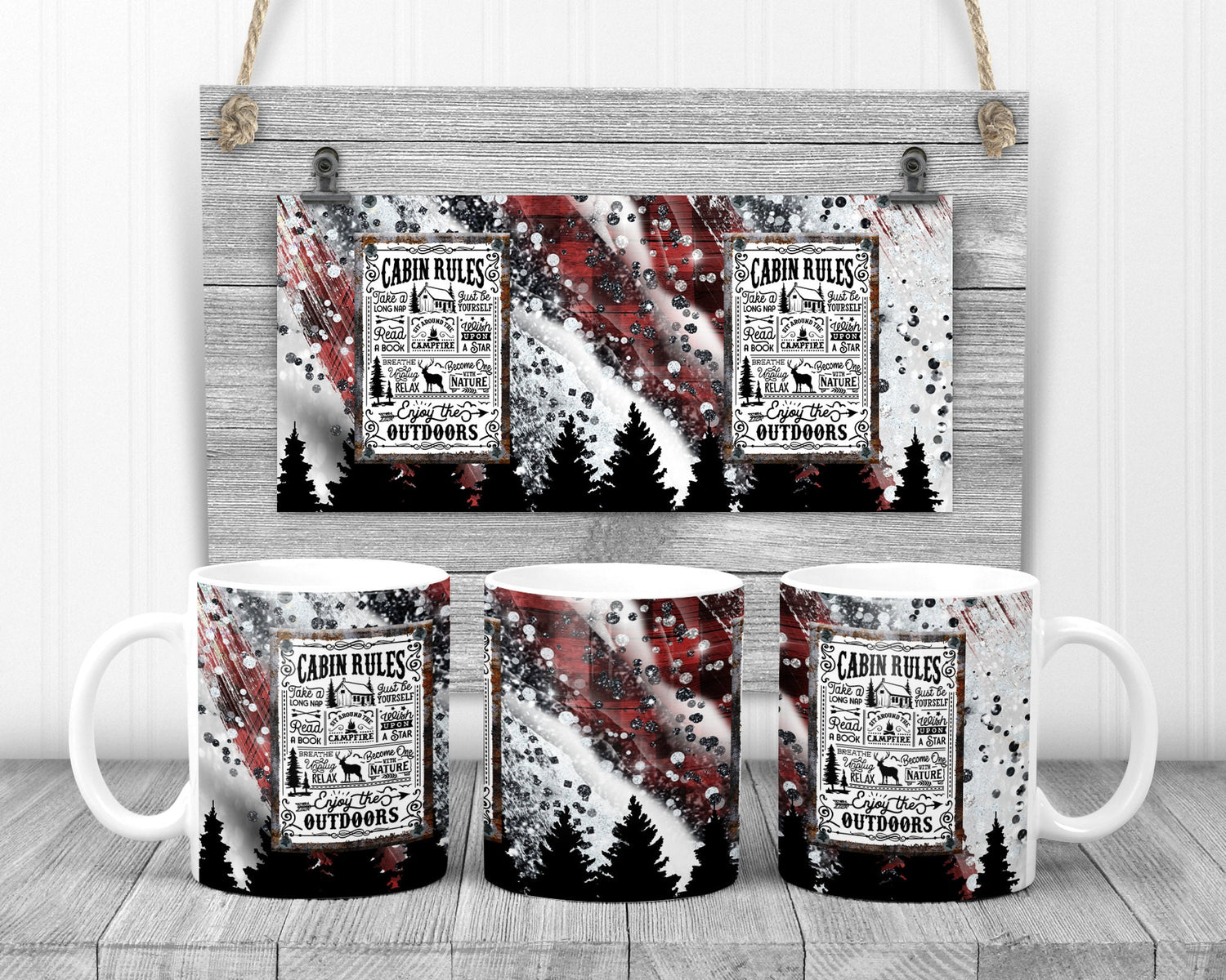 Sublimation Stainless Camp Cup Mug Milkyway plaid Cabin Rules Sublimation Design Camper